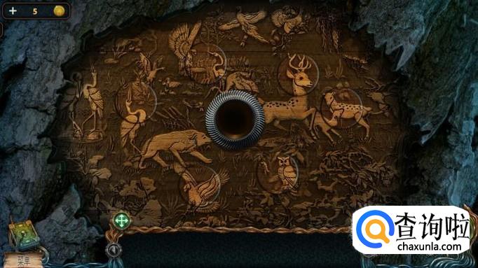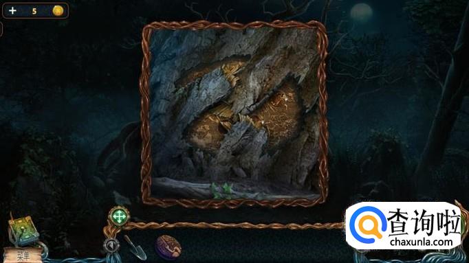 点击中间有光亮的部分进入下一个场景。首先映入眼帘的就是一棵大树,点击大树,就可以剥掉上面的树皮,显示出一类似于拼图的东西,但上面还少了一些东西。