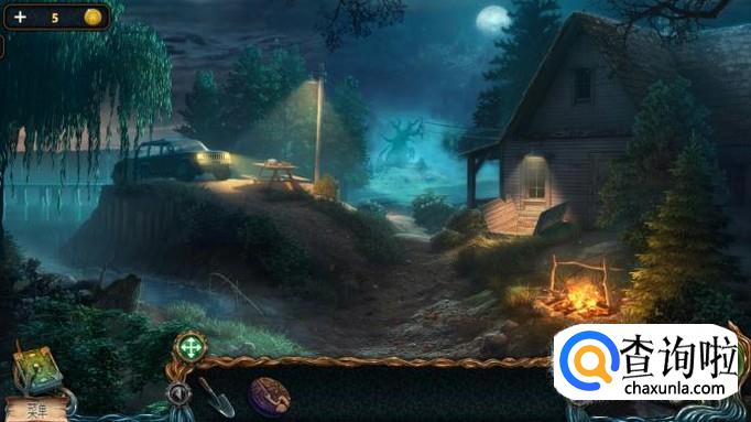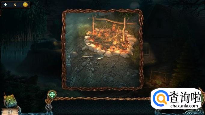 上图所示为第一个场景,我们首先点击火堆,可以看到有一个铲子,拾起铲子放进物品栏。