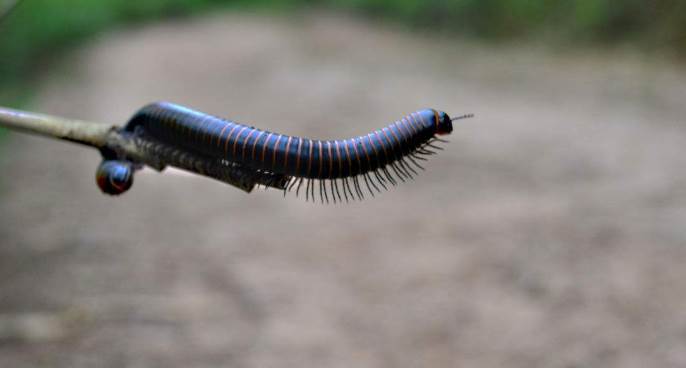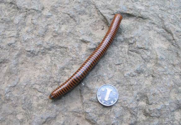 马陆也叫千足虫、千脚虫、秤杆虫。马陆属于节肢动物门,多足亚门,倍足纲,体节组成。长约20~35毫米,暗褐色,背面两侧和步肢赤黄色。马陆能喷出有刺激性气味的液体,热带雨林中的马达加斯加猩红马陆喷出的液体能使人双目片刻失明。