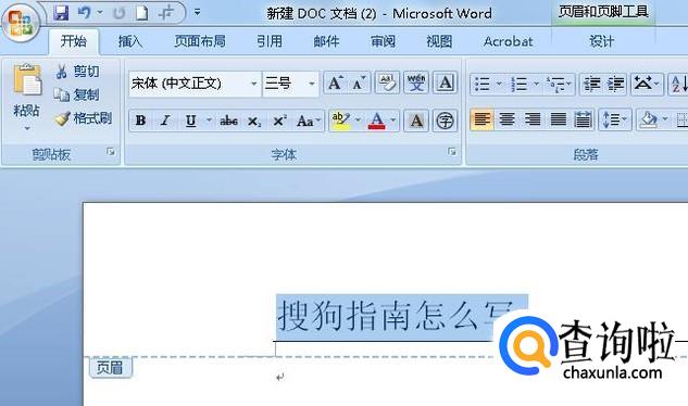 双击页眉区域,进入编辑状态,如图所示,用鼠标选中页眉文字。