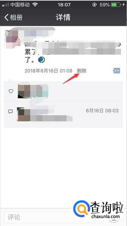 点击朋友圈内容详情后,在下方看到删除的功能就点击一下。