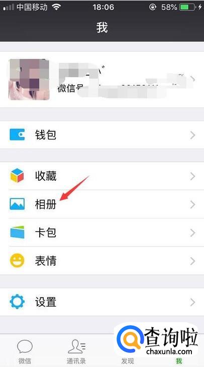 首先我们登录微信后在我的页面里点击相册进入到个人朋友圈。