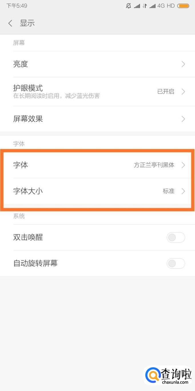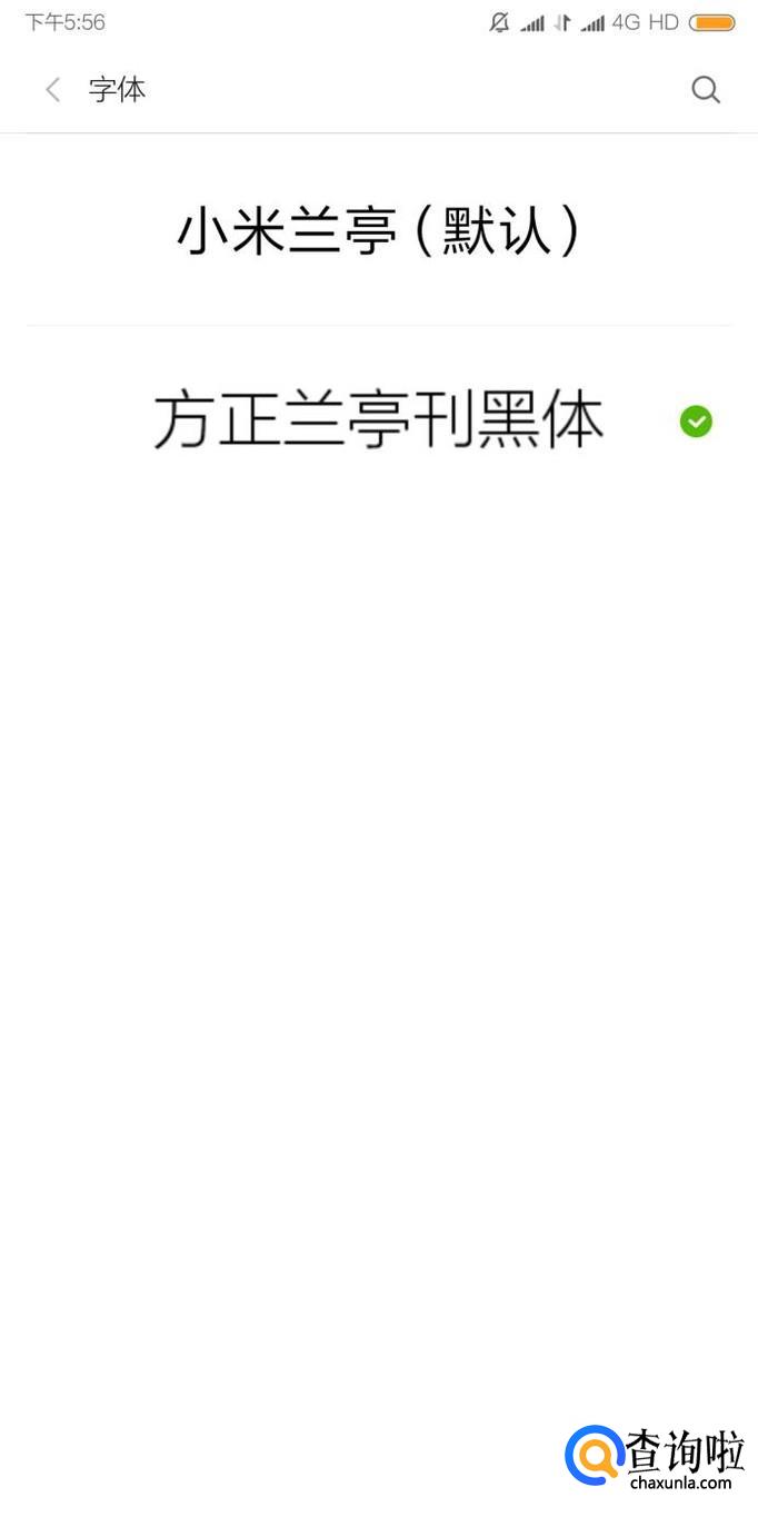 点击进入“字体”设置选项就可以设置手机的显示字体,字体文件可以到红米手机里的“个性主题”程序下载即可。