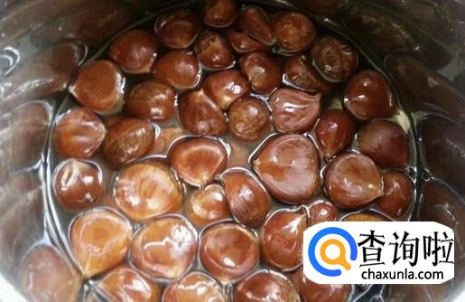 栗子洗净后,用刀从中间稍切个口子;然后放到盐水中,在炉子上煮10分钟左右;趁热去就能掉板栗的壳和皮了。