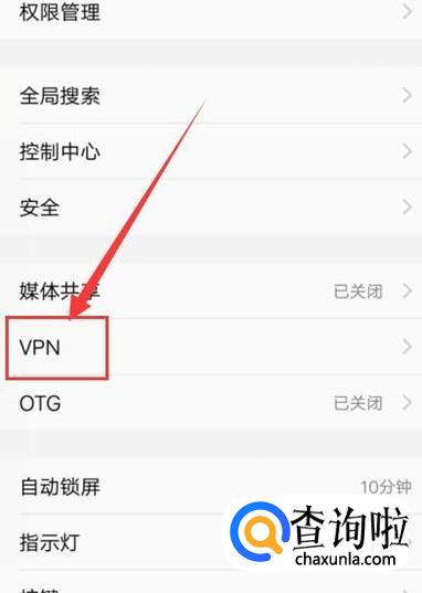 在“更多设置”界面,找到“VPN”,进入下一界面。