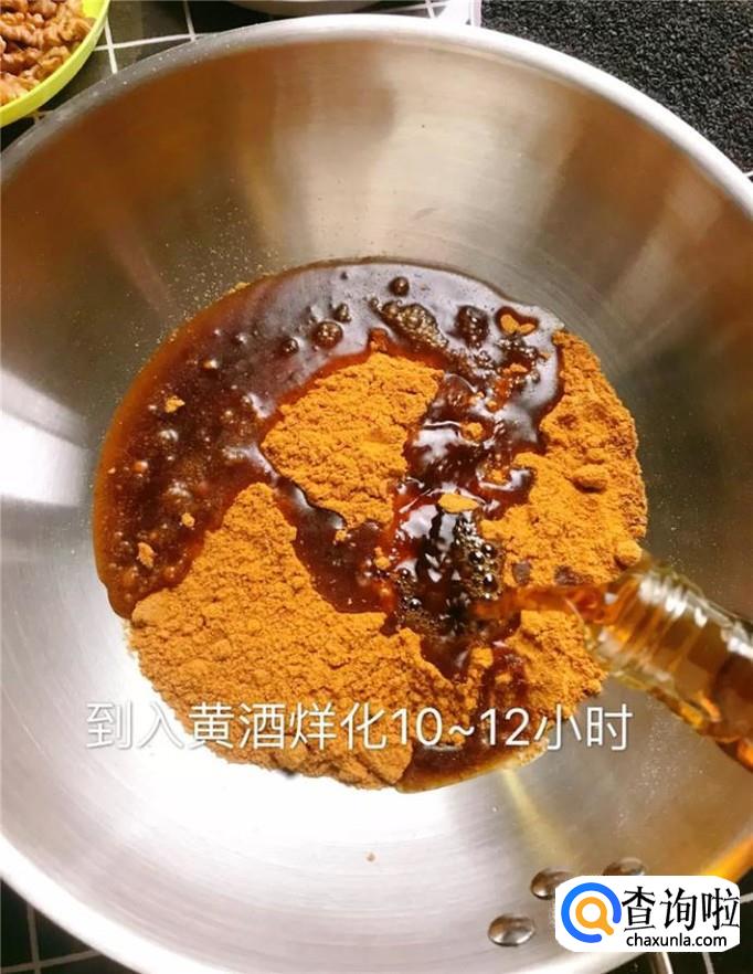 接着加阿胶粉用黄酒浸泡10到12个小时,如下图所示。