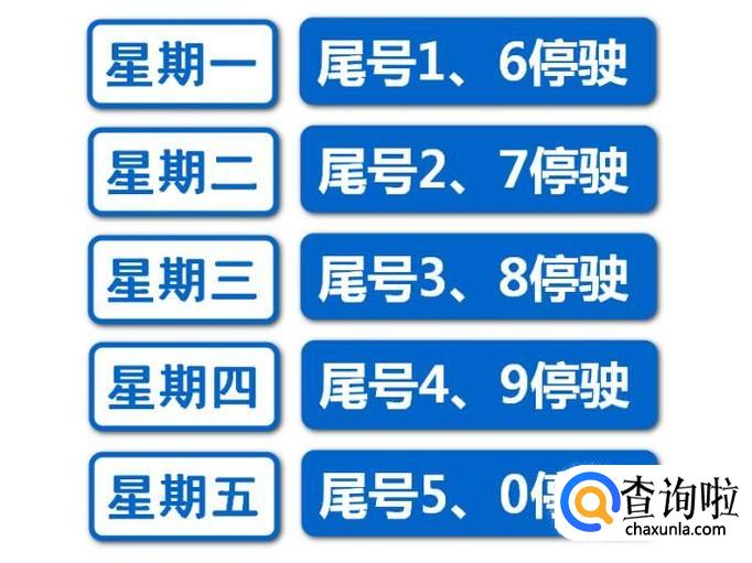 限行车辆尾号分为5组,按照星期一到星期五五天,每天对应两个号码,很好记,不要搞错了;