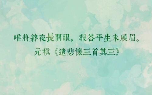 接着从绝望中转出希望来,寄希望于死后夫妇同葬和来生再作夫妻。但是,再冷静思量:这仅是一种虚无缥缈的幻想,更是难以指望的,因而更为绝望:死者已矣,过去的一切永远无法补偿了!诗情愈转愈悲,不能自已,最后逼出一个无可奈何的办法:“惟将终夜长开眼,报答平生未展眉。”诗人仿佛在对妻子表白自己的心迹:我将永远永远地想着你,要以终夜“开眼”来报答你的平生平生不得伸展的双眉。真是痴情缠绵,哀痛欲绝。