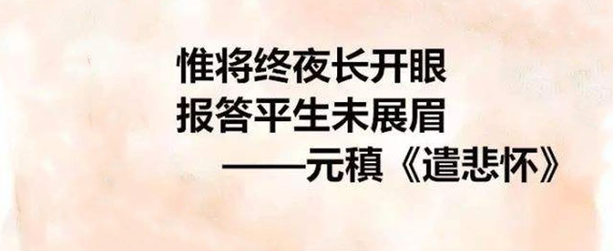 “报答平生未展眉”的意思是报答你平生不得伸展的双眉。出自中唐诗人元稹的《遣悲怀·其三》二十五岁的元稹娶太子少保韦夏卿的季女韦丛;二十七岁时韦丛病死,元稹写下“惟将终夜长开眼,报答平生未展眉”的诗句。