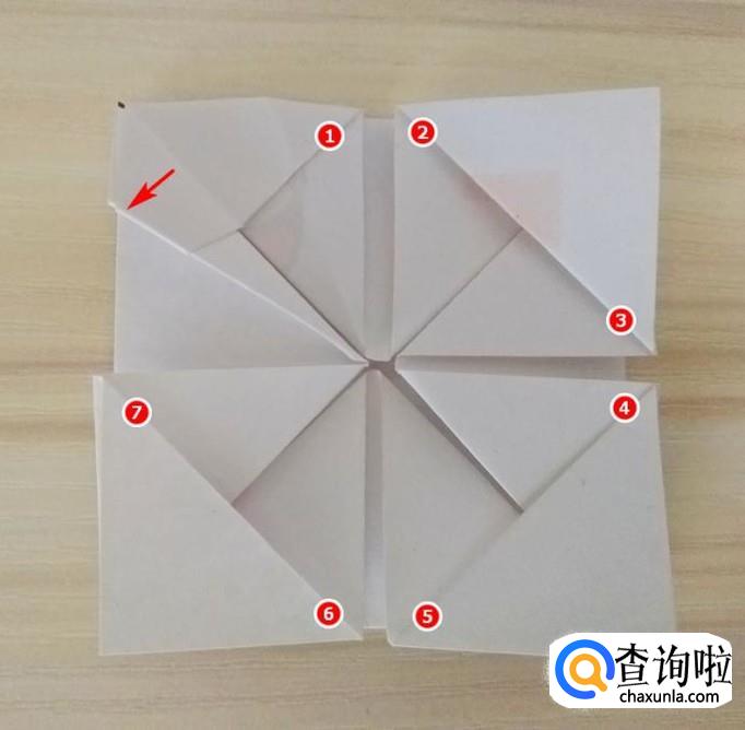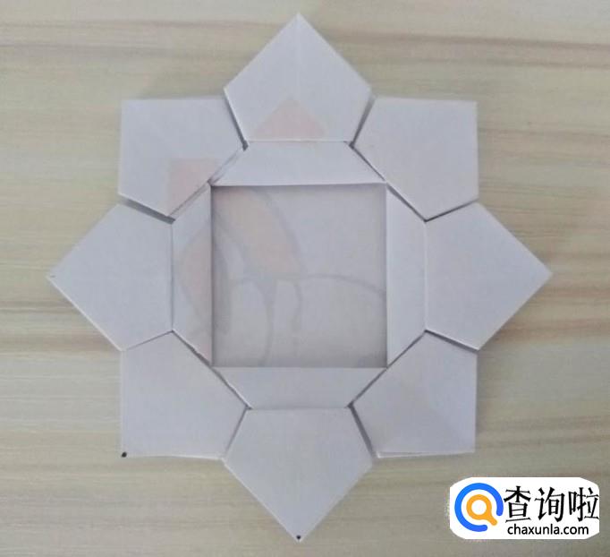 折好以后,如图折下来,其他7个角同样折法,全部折好的效果如图;