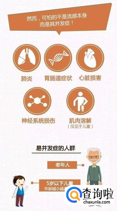 流感也会引起一系列并发症,如细菌性肺炎,某些心脏疾病和神经系统疾病。