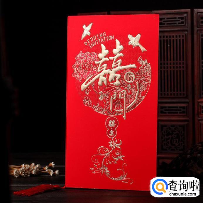 仍然有许多新人喜欢选用红色作为婚礼的主题颜色,如果想在结婚喜帖上寻求创新,那么这款带有花朵底纹材质的结婚喜帖肯定让你满意,传统又不失大方、新颖,新鲜感十足。