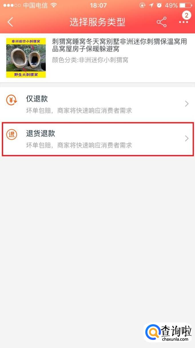 在退款页面点击“退货退款”。