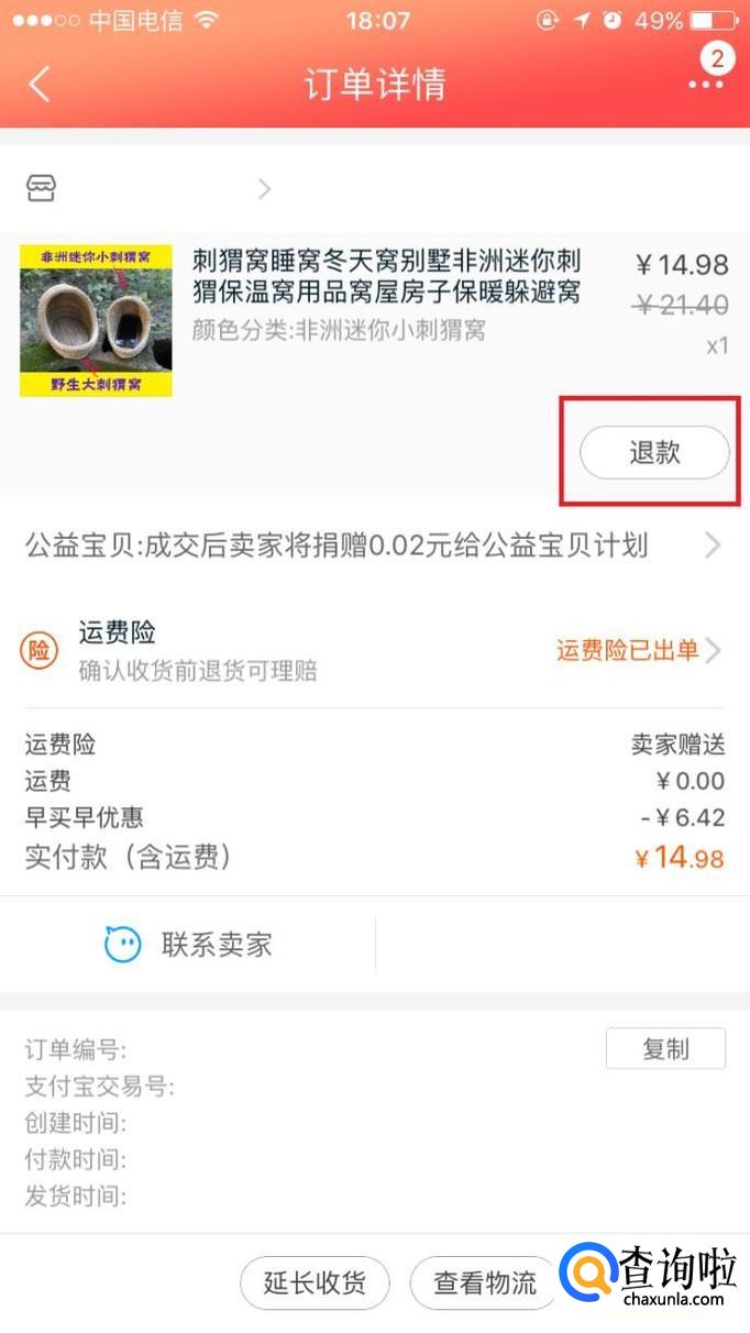 进入商品的详情页面,点击“退款”。