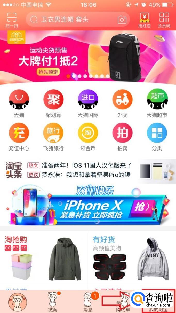 进入淘宝首页后点击右下角的“我的淘宝”。