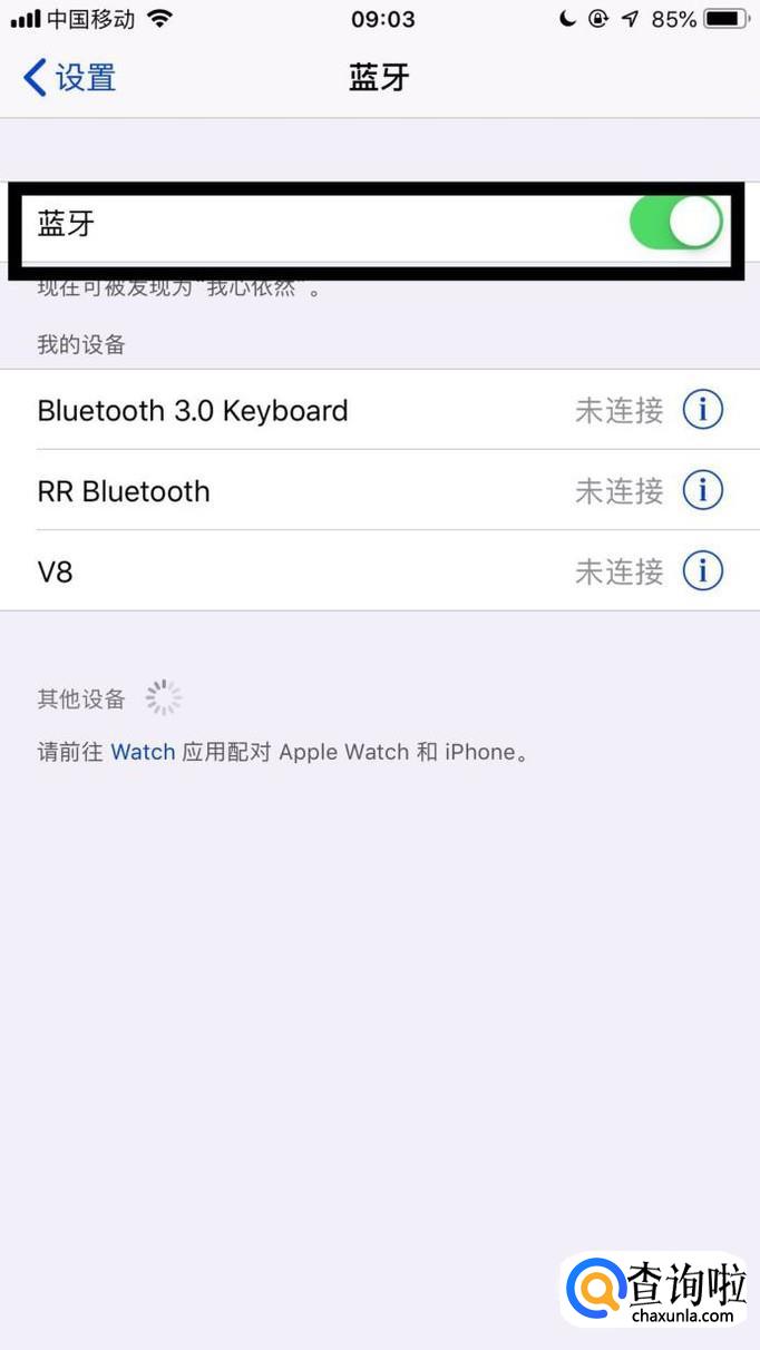 如果想让我们的苹果手机连接上无线耳机,可以参考以下操作:首先打开蓝牙耳机的开关,然后在我们的手机桌面上找到设置并点击它,接着点击蓝牙,然后开启蓝牙开关,接着点击我们蓝牙锁搜索到的设备就可以了。