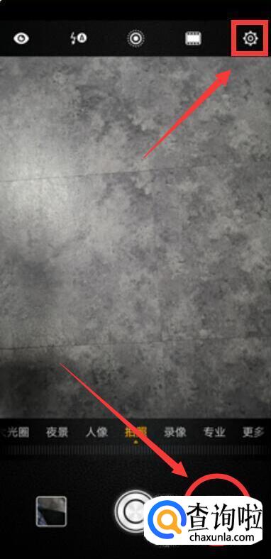 点击右下角拍摄键旁边的图标切换后置摄像头后,点击右上角的设置图标