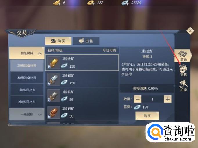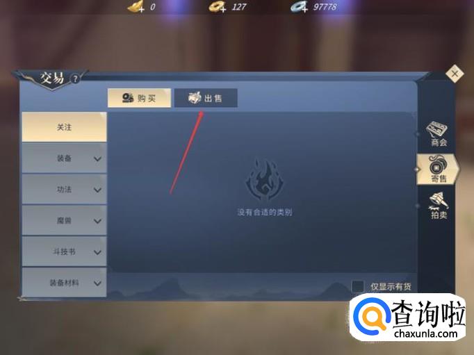 玩家想要寄售物品,首先点击主页上方的【交易】。