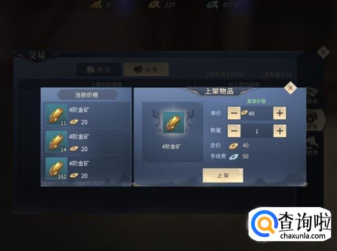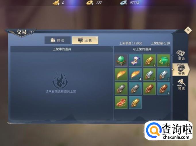最后设置好物品的单价后点击【上架】功能,这样就完成物品寄售的操作了。