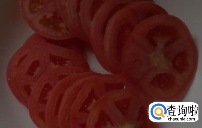 西红柿清洗干净,切成薄片,装盘备用