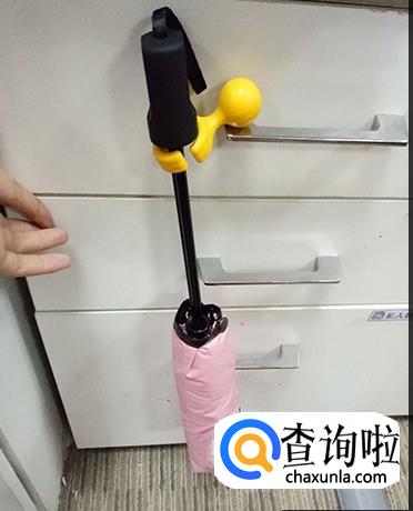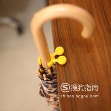 使用伞粒套住伞把,可以将雨伞挂在抽屉的把手上,这样雨伞不容易掉。