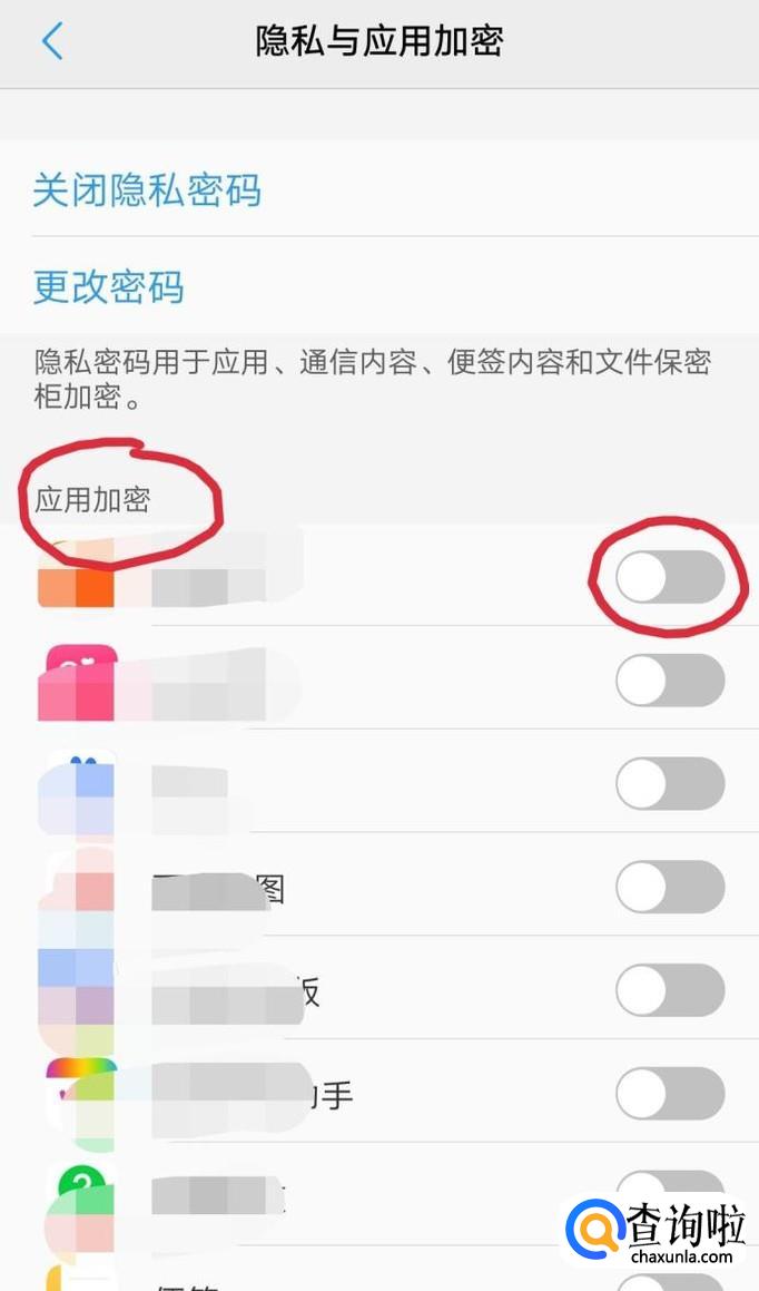 在应用加密里面勾选需要加密的应用,勾选之后再次登陆该应用就需要输入刚才设置的应用加密密码了。
