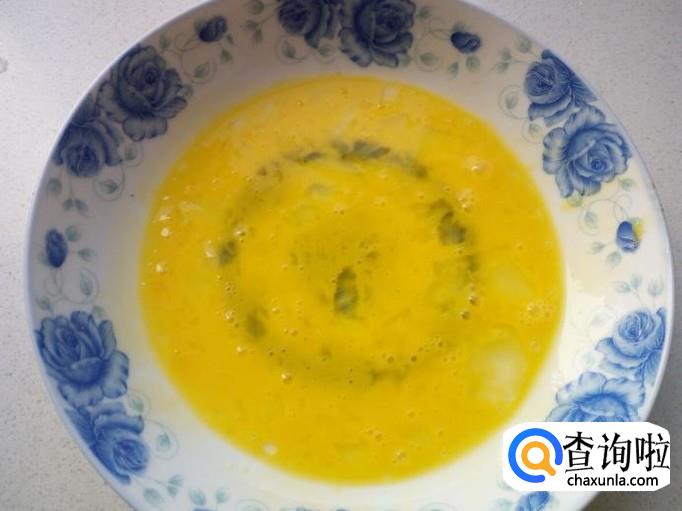 鸡蛋打入盘中,搅拌成蛋液。