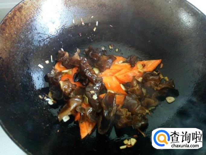 随即放入木耳大火爆炒。