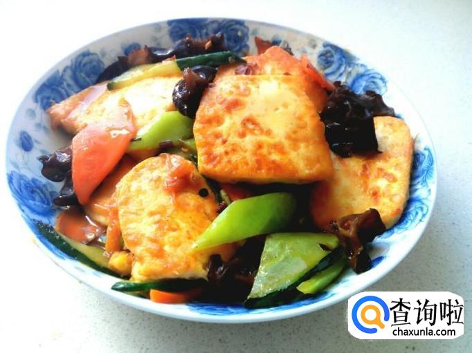 豆腐半块,木耳25克,鸡蛋 1个,胡萝卜 半根,黄瓜 半根,青尖椒 1个。