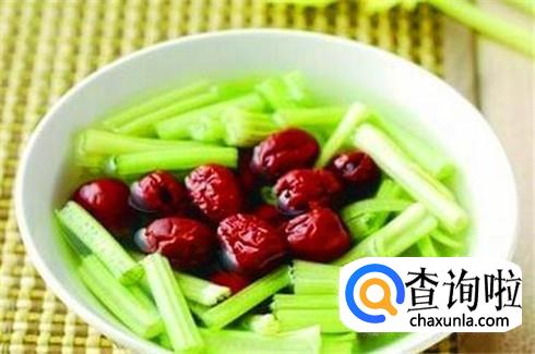 有根的芹菜清洗干净,选择大概十颗红枣,一起清洗干净之后放进锅里煲汤,每天两次,有着辅助治疗高血压的效果。