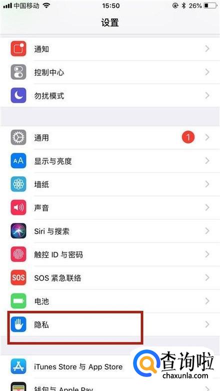 然后点击隐私,如下图所示。