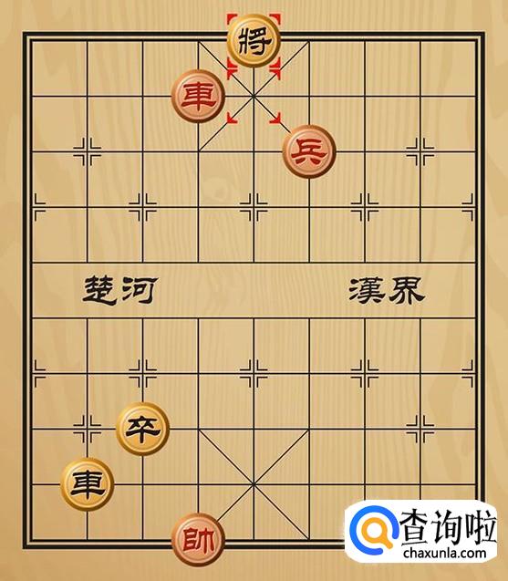 红方兵五进一(下一步就可以绝杀黑方了),黑方车2进1将军(以攻代守)。