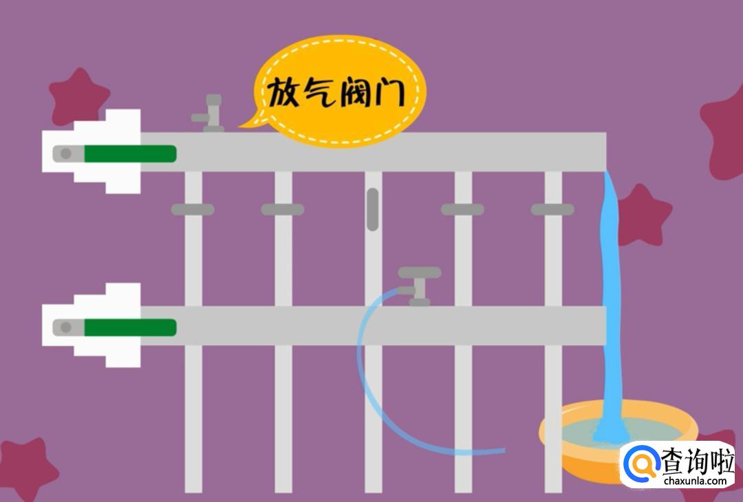 打开分水器进水管上的放气阀门,进行第一次放气,直到放出的水不含气泡时关闭气阀门。