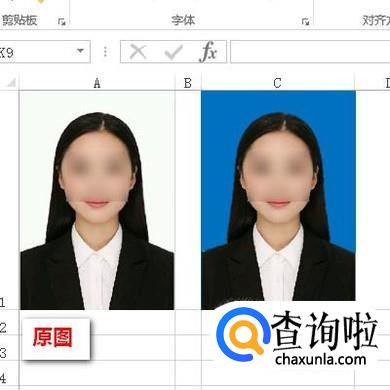 这时,我们再看表格上的证件照,证件照的背景已更改为蓝色了。