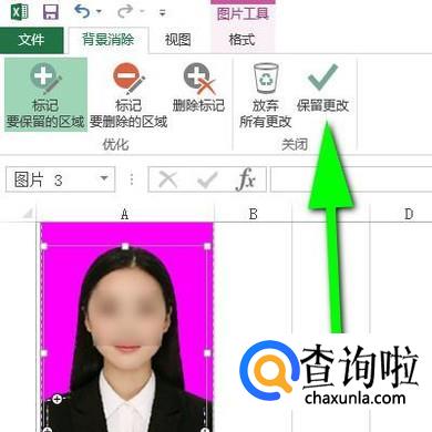 接下来,鼠标点击“保留更改”这个按钮。那么,证件照的背景颜色已删除掉了。