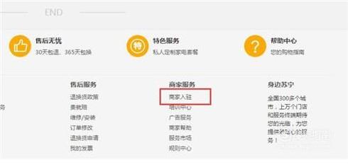 进入苏宁易购官网页面后,把页面滑到最底部,在商家服务中,点击“商家入驻”