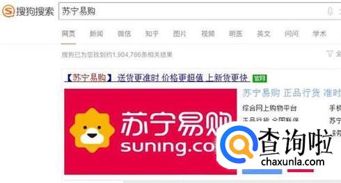 打开搜狗浏览器,在搜索框中输入“苏宁易购”,点击带有蓝色字体“官网”的链接进入页面。