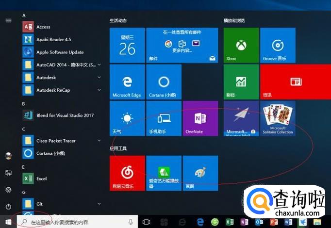 首先我们点击任务栏"开始"按钮。用于弹出开始菜单。大家会发现右侧有很多磁贴,其实用处并不是很大。
