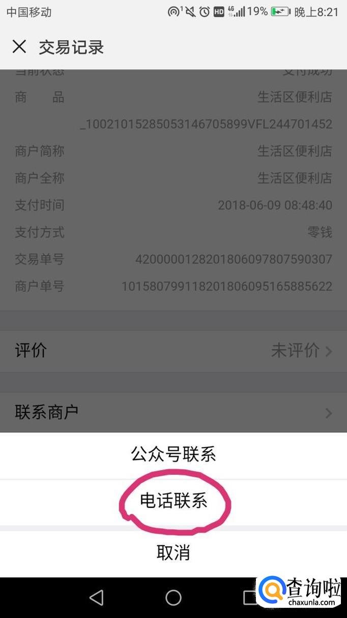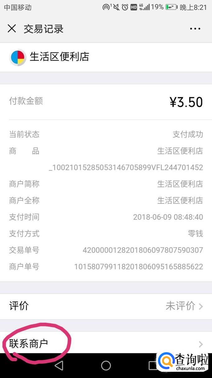 首先在微信支付里找到你要联系的商家,点击该账单,如图。