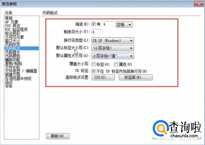 我们首先选择代码格式参数,如下图所示,在红框中可以设置缩进等内容