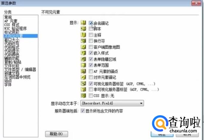 然后我们来看一下不可见元素参数,这一项主要是设置页面中显示的内容,如下图所示,我们勾选命名锚记