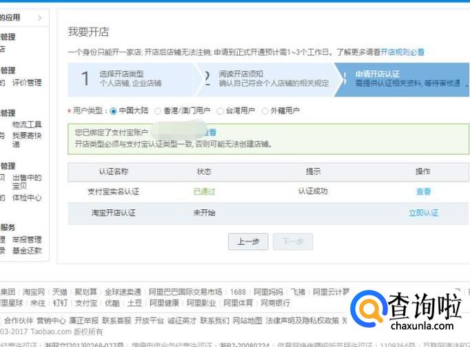 进入“立即认证”,按步骤完成相关的认证后,重新登录账号,开店成功。