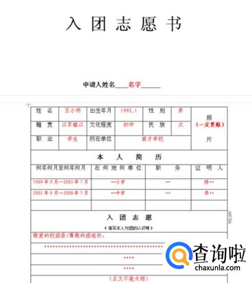 入团志愿书的填写要求,出生年月应填写公历时间应具体填写年份和月份。籍贯按其父亲籍贯具体填写,从省至县级行政区名称。文化程度,应填现有文化程度,本人简历应从小学一年级起算,已在一个学习或单位学习工作分段填写,同时填写职务和证明人。