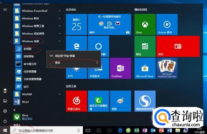 如图所示,拖动右侧垂直滚动条。展开"Windows 系统"文件夹,鼠标右击"此电脑"项。
