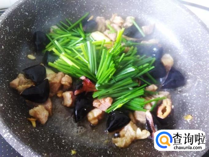 最后下韭菜苔进去大火翻炒20秒左右就可以了。