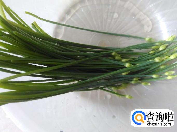 首先把韭菜苔清洗干净,然后切成一段段。