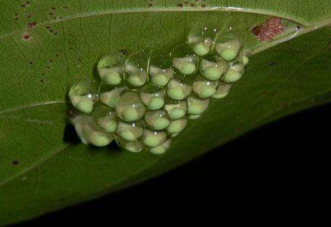 有些树蛙也会将卵产在池塘边或陆地上的安全小坑内,靠着雨水或者小蝌蚪自己的运动脱离小水坑进入池塘。
