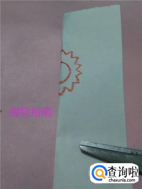 在半圆形的右侧画一圈锯齿形状,表示太阳花的花瓣。