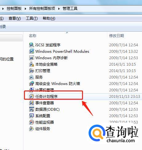 在管理工具界面上,选择“任务计划程序”;如图。
