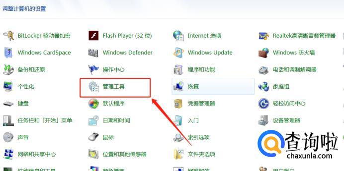 在控制面板中,找到“管理工具”,单击进入管理工具。